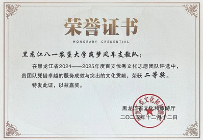 6月25日至26日,由团省委主办的“北大荒青年”助农志愿服务队培训交流暨建功竞赛活动在北大荒集团共青农场举办,活动中农学院“北大荒青年”助农志愿服务队获特等奖、工程学院“北大荒青年”助农志愿服务队获一等奖。